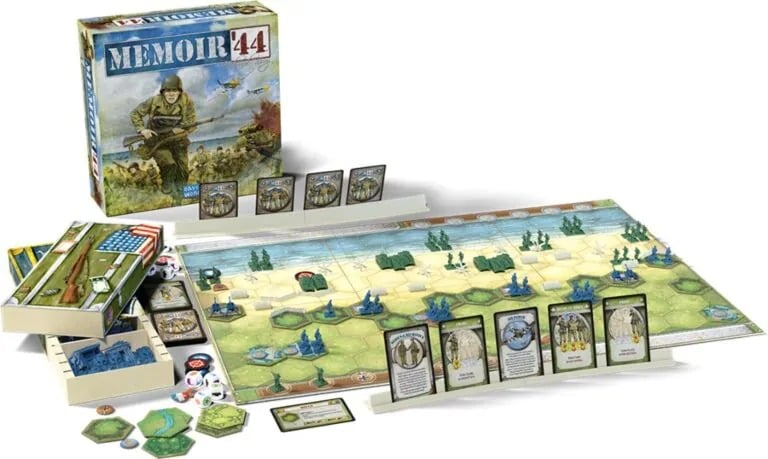 Memoir '44 is a historical boardgame where players face-off in stylized battles of some of the most famous historic battles of World War II including Omaha Beach, Pegasus Bridge, Operation Cobra and the Ardennes.