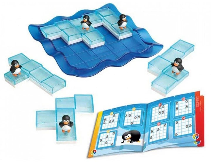 80 ulike utfordringer. Form isen slik at pingvinene plasseres riktig. 5 brikker med ulike høydenivåer.